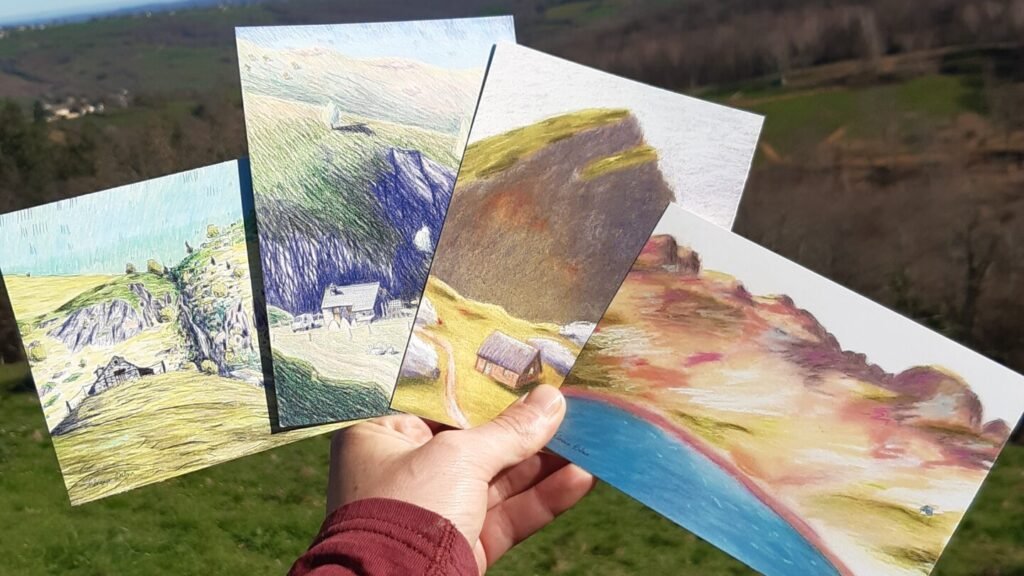 Les nouvelles cartes postales d’estive sont disponibles à la vente sur ma boutique. Inspirées de l’estive et dessinées là-haut, dans