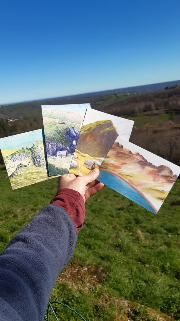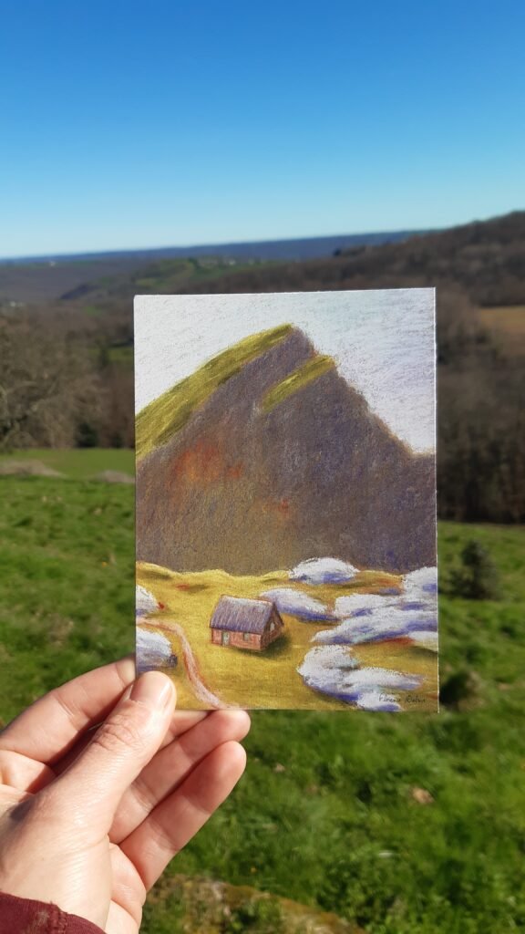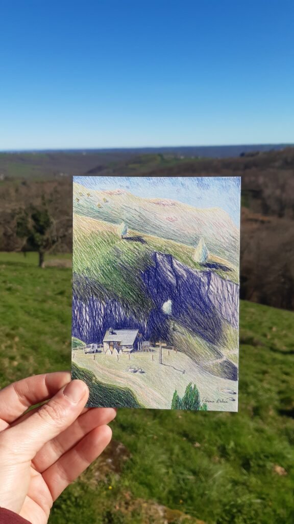 Les cartes postales « Cabanes des Pyrénées – série été » sont dessinées in situ dans les montagnes, et imprimées à Lourdes. Disponibles dans ma boutique en ligne 🙂