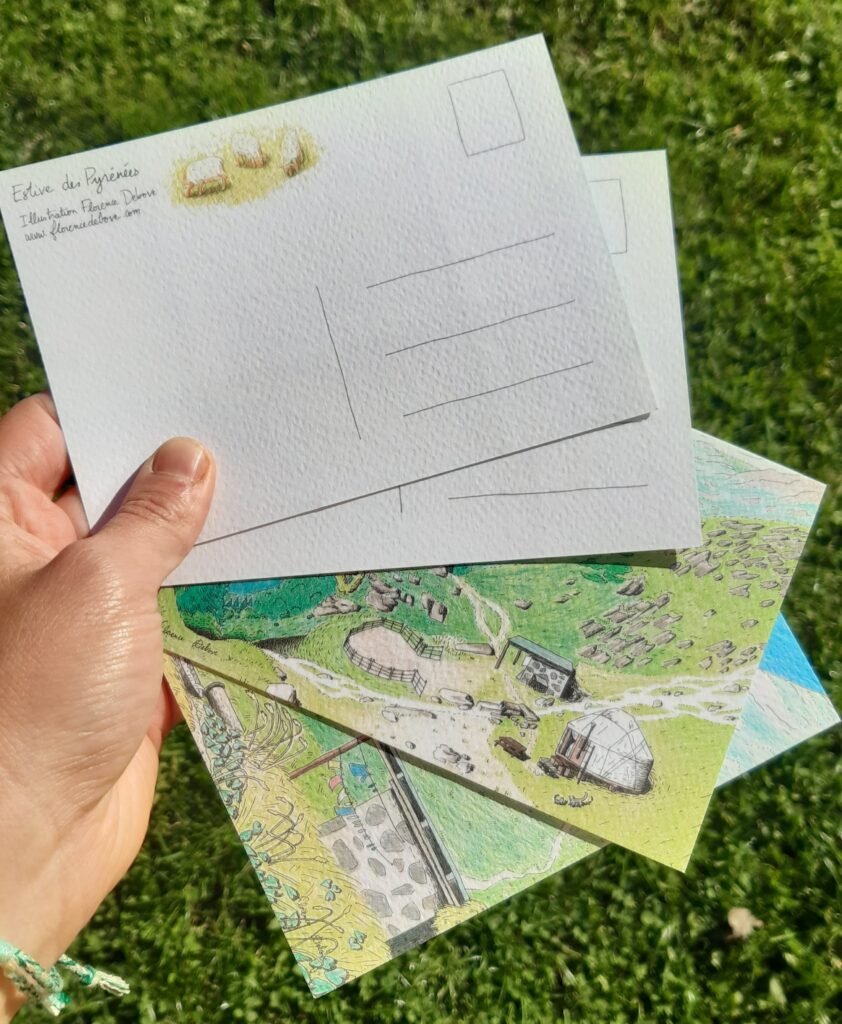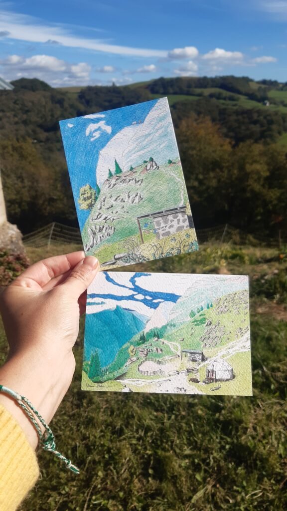 Les nouvelles cartes postales d’estive sont disponibles à la vente sur ma boutique. Inspirées de l’estive et dessinées là-haut, dans le Val d’Azun, au crayon de couleur.